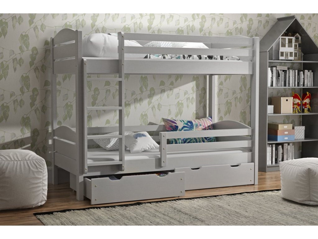 Patrová postel Pier šedá 80x200 cm + zásuvky + rošty ZDARMA