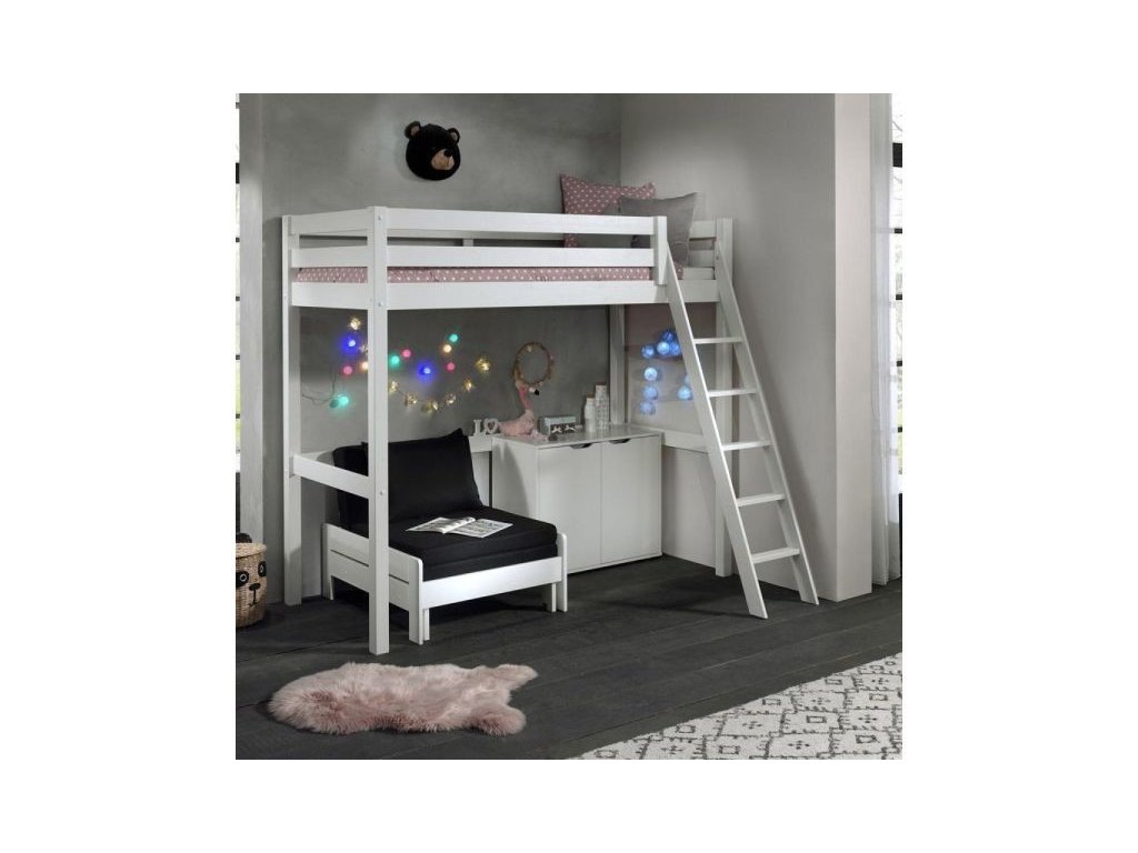 Díky žebříku s širokými nášlapy je výstup i sestup z postele bezpečný a pohodlný. Žebřík je navíc možné umístit na obě strany postele, což přináší flexibilitu při montáži. Extra zvýšená konstrukce postele vytváří pod lůžkem volný prostor, který lze využít pro uložení nábytku, stolu nebo sofa, čímž optimálně využijete každý centimetr vašeho pokoje.